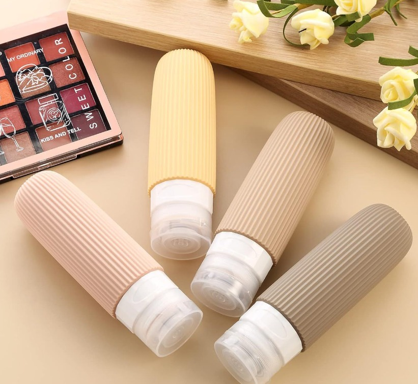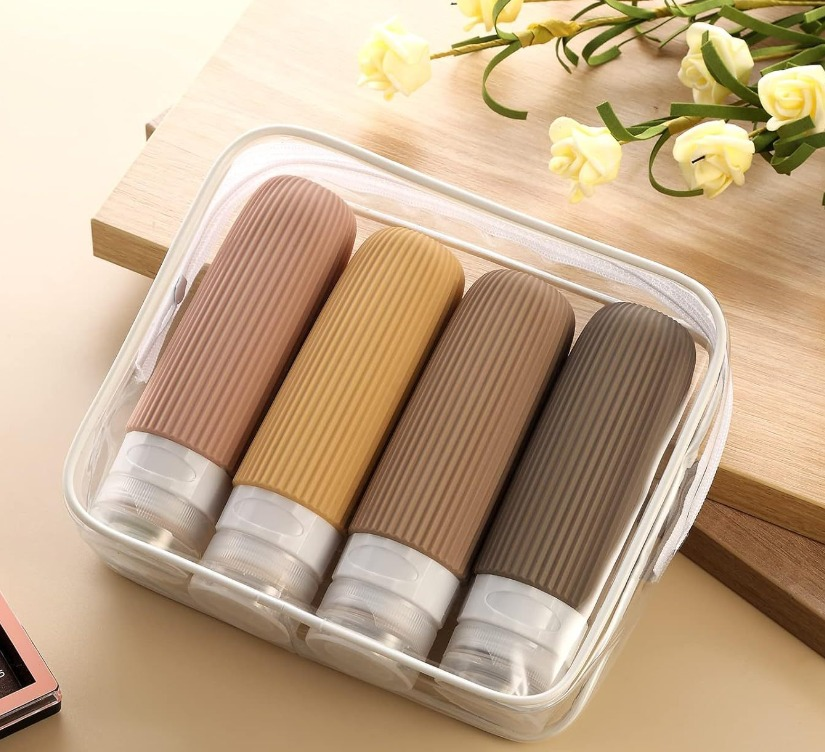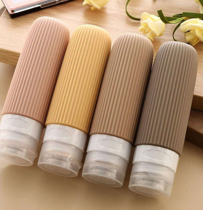 SET DE BOTELLAS SILICONADAS DE VIAJE LISO MARRON 90ML