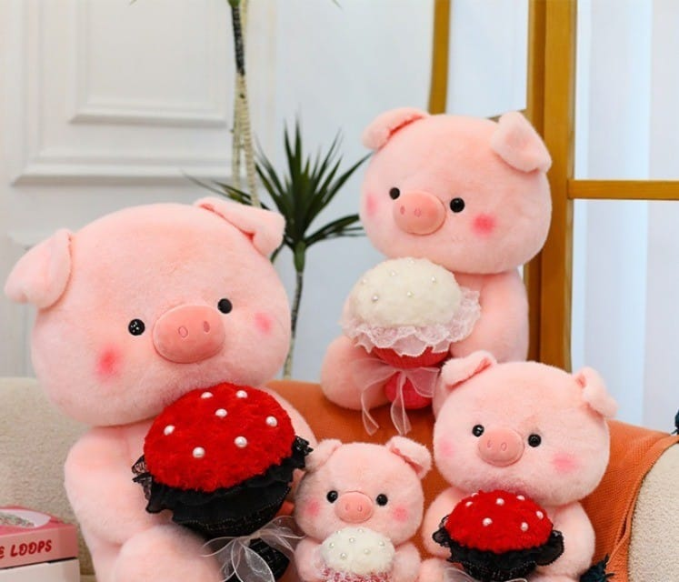CHANCHA PELUCHE CON RAMO FLORES 40CM