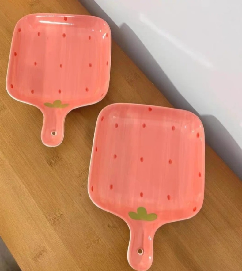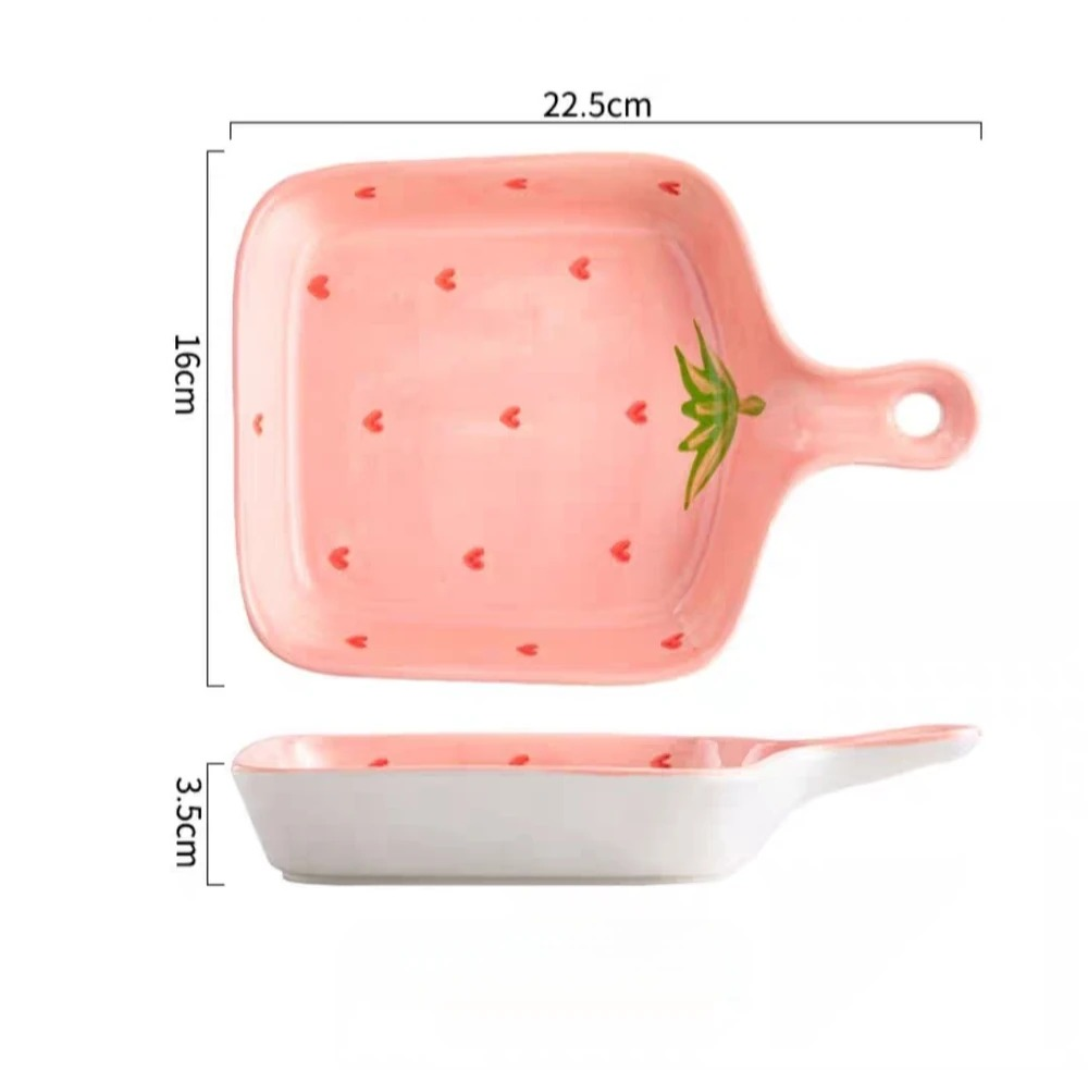 PLATO CUADRADO CON MANIJA CERAMICA 22CM LINEA FRUTILLA