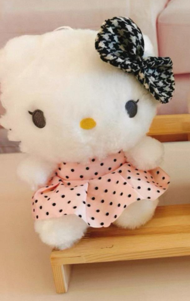 KITTY PELUCHE 22CM BVESTIDO LUNARES ROSA