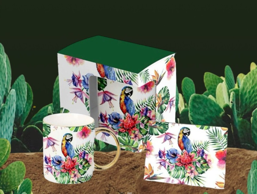 HERMOSA PIEZA DE PORCELANA IMPORTADA DISEÑO SAFARI AFRIC GUACAMAYO