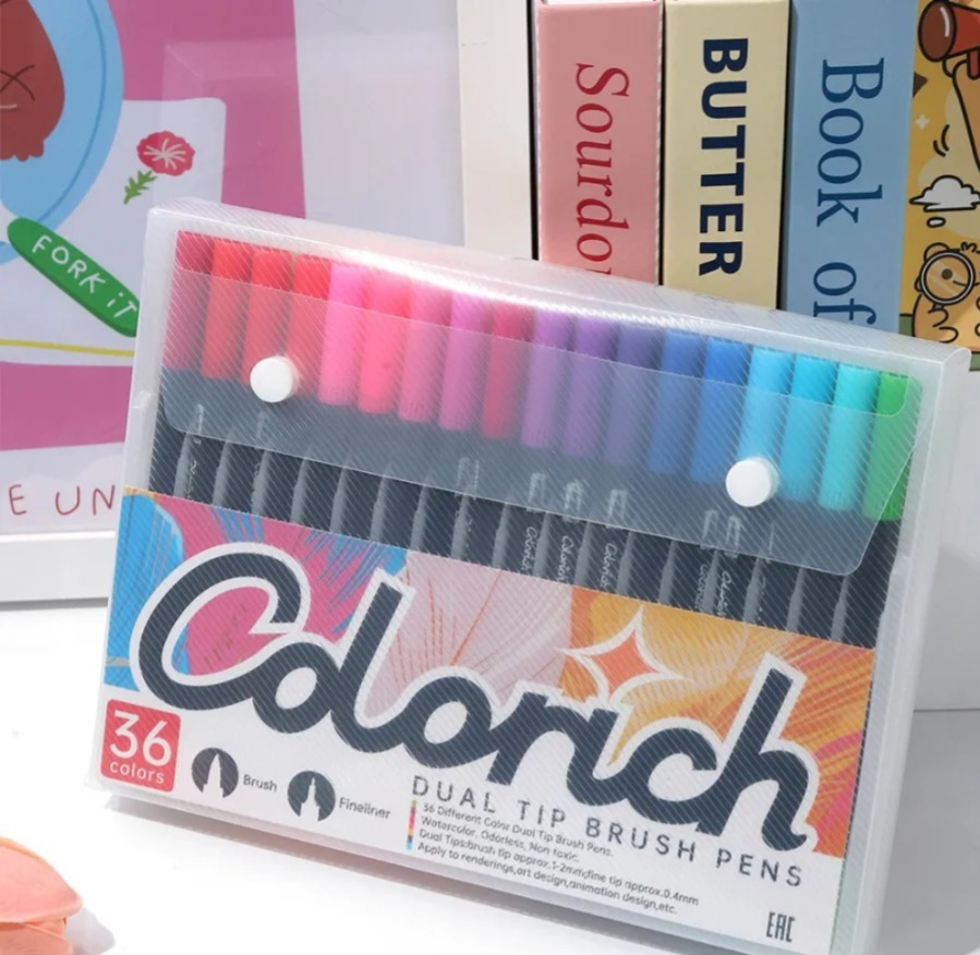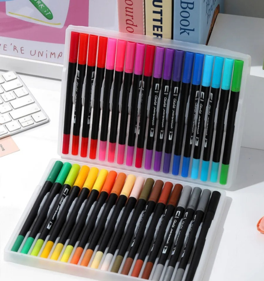Set de 36 marcadores de doble punta, ideal para dibujar, colorear y resaltar con precisión.