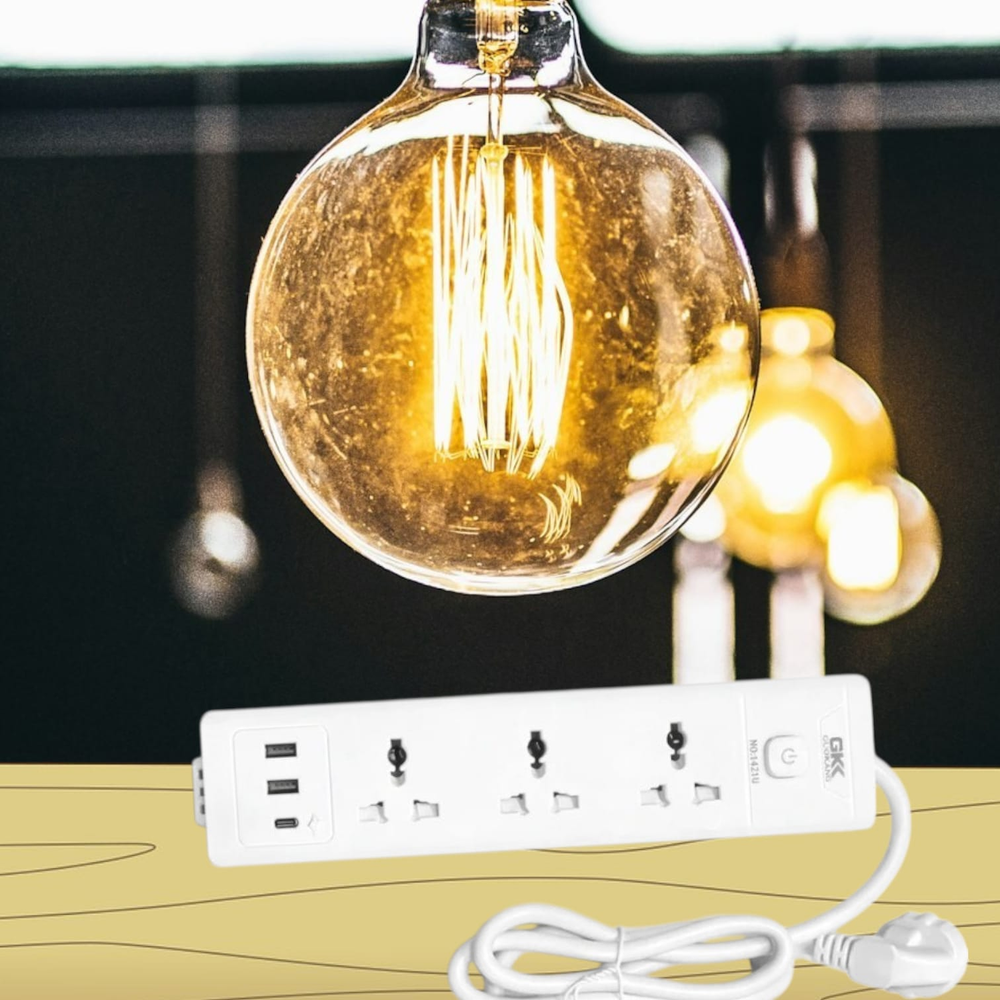 Zapatilla multifunción ideal para el hogar u oficina. Cable 1 metro. Permite conectar varios dispositivos y cargar por USB tipo C de forma práctica y segura.