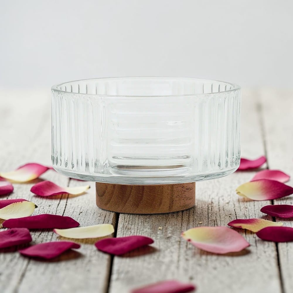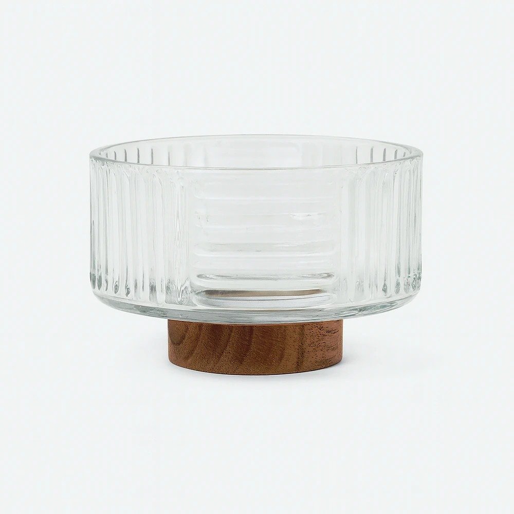 BOWL DE VIDRIO 9.5CM X 14CM CON BASE ACACIA