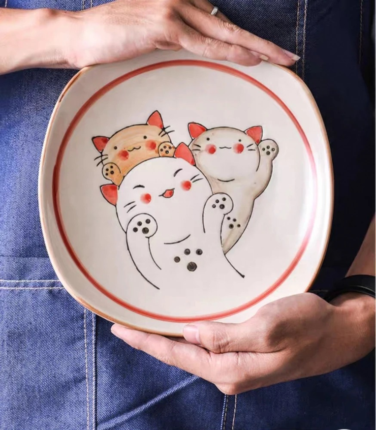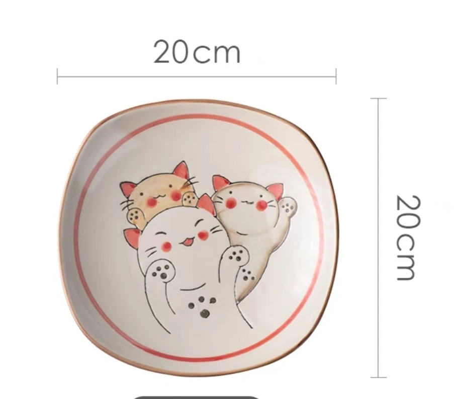 PLATO CERAMICA CUADRADO 20CM TRES GATOS