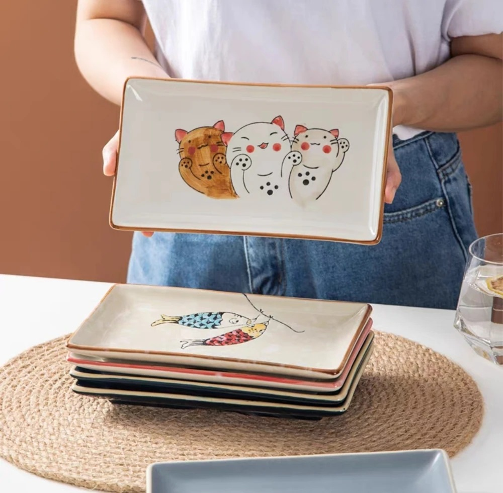 PLATO CERAMICA RECTANGULAR 22CM TRES GATOS