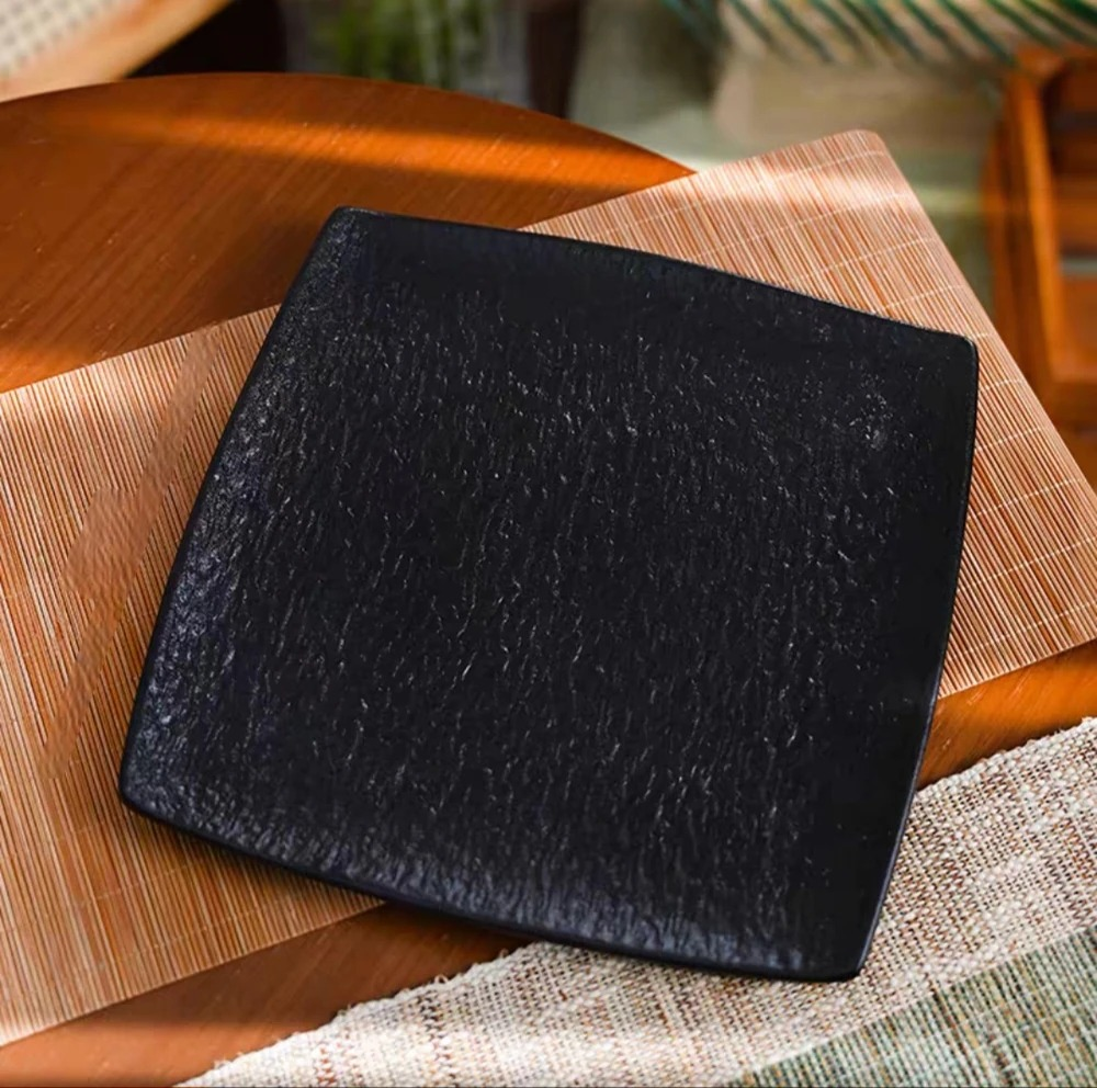 PLATO CUADRADO CERAMICA NEGRO LABRADO 25CM