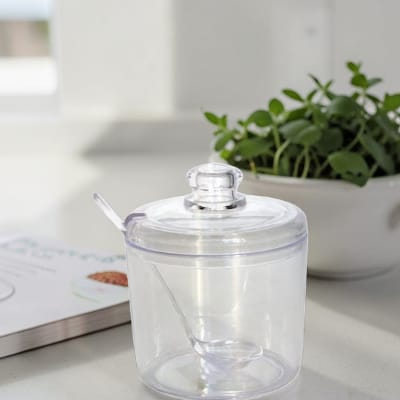 AZUCARERA CON TAPA ACRILICA REDONDA CON CUCHARA