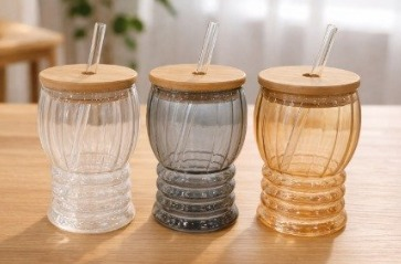 VASO VIDRIO PERA CON TAPA BAMBU+ SORBETE