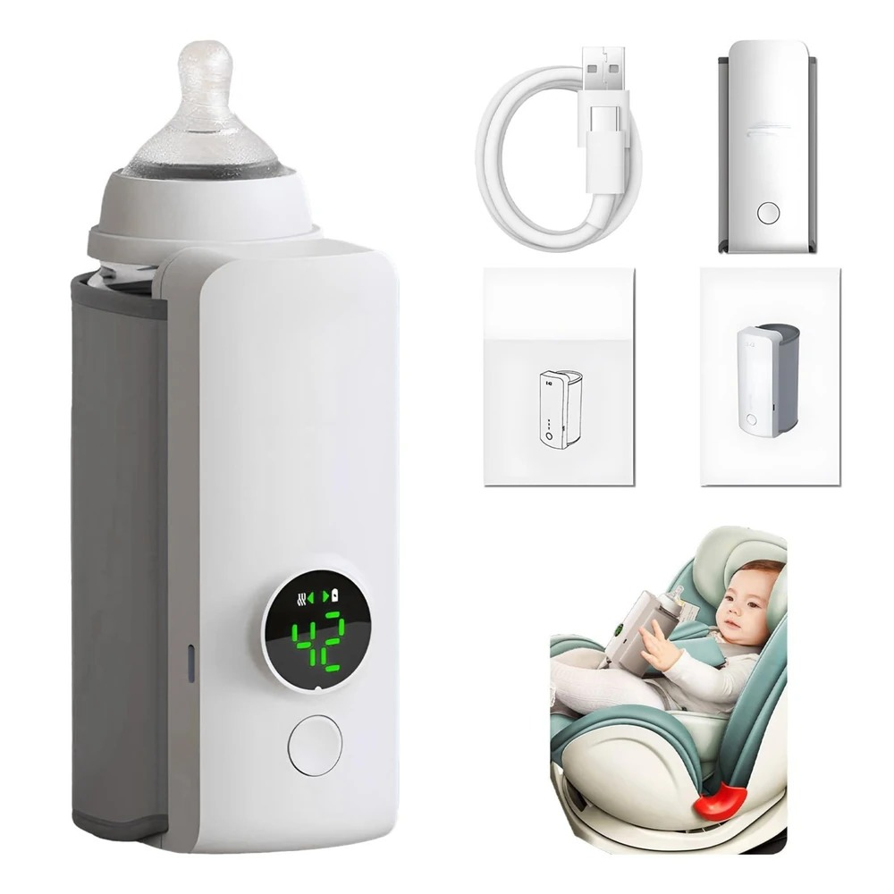 Calentador de Mamadera Portátil Recargable USB El Calentador de Mamadera portátil es el aliado perfecto para quienes buscan practicidad y comodidad en la alimentación de su bebé. Gracias a su diseño portátil y recargable por USB, podrás llevarlo contigo a donde sea, sin necesidad de cables ni tomas de corriente. Calentamiento eficiente: El dispositivo está diseñado para calentar la mamadera de tu bebé y mantener a la temperatura ideal (37°C) hasta por 5 horas con una carga completa, perfecto para cuando estás de paseo, en el auto o de viaje. Control preciso y seguro: Su pantalla digital y apagado automático garantizan una experiencia cómoda y segura, evitando sobrecalentamientos y asegurando siempre la temperatura adecuada. Portátil, liviano y fácil de llevar: Con su peso ultraligero, cabe fácilmente en tu bolso de pañales, mochila o cochecito, haciéndolo ideal para cualquier salida. Materiales de primera calidad: cuenta con un agarre ajustable de velcro hecho de piel sintética en el exterior y material avanzado en el interior, que se calienta rápidamente y retiene el calor durante períodos más largos. QUÉ INCLUYE: 1 Calentador de Mamaderas 1 Cable USB-USB C 1 Manual del Usuario ¡Llévalo a todas partes y disfruta de la tranquilidad de tener siempre lista la mamadera de tu bebé!
