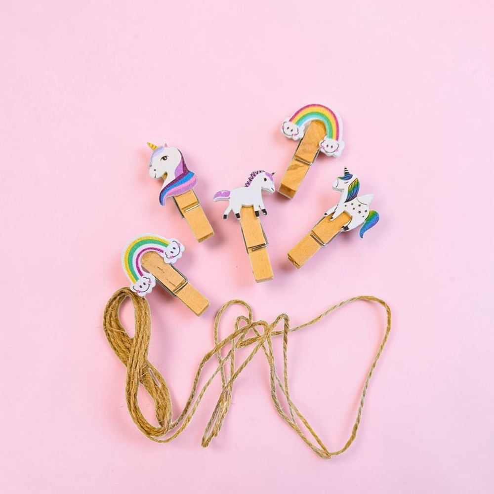 BROCHECITOS DE MADERA DE UNICORNIO X 10 CON HILO