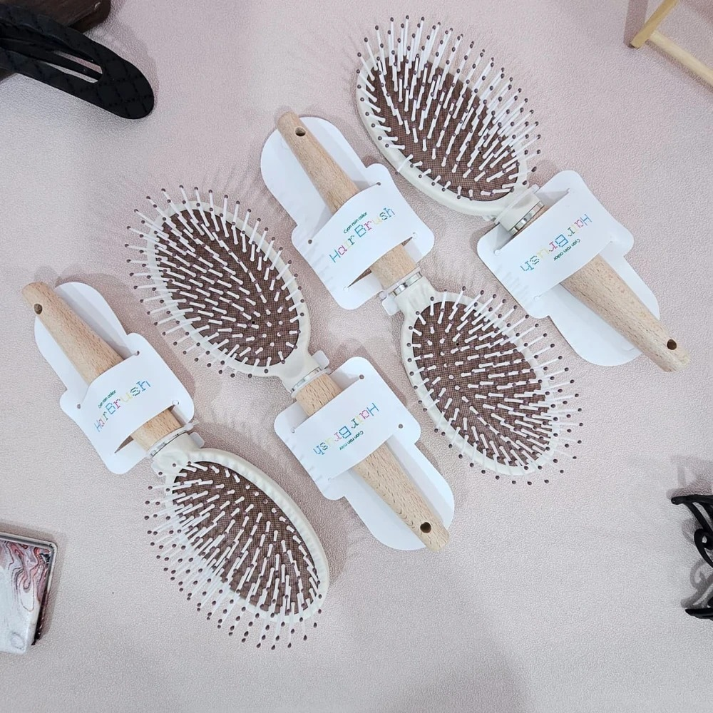 (Cepillo para el cabello con cojín, minimalista, previene la estática, cepillo de masaje para desenredar con mango de madera para peluquería en casa, ovalado).