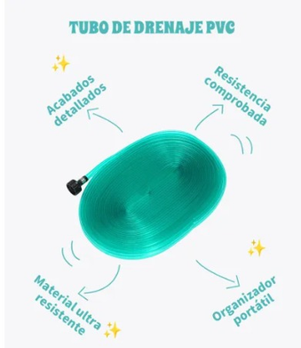 Manguera de riego. Ideal para jardines, huertas y áreas verdes, esta manguera de riego por goteo está fabricada en resistente PVC, lo que garantiza durabilidad y flexibilidad. Con una longitud de 15 metros, permite un riego uniforme y eficiente, ahorrando agua y tiempo. Incluye conexión estándar para fácil instalación en grifos y sistemas de riego.