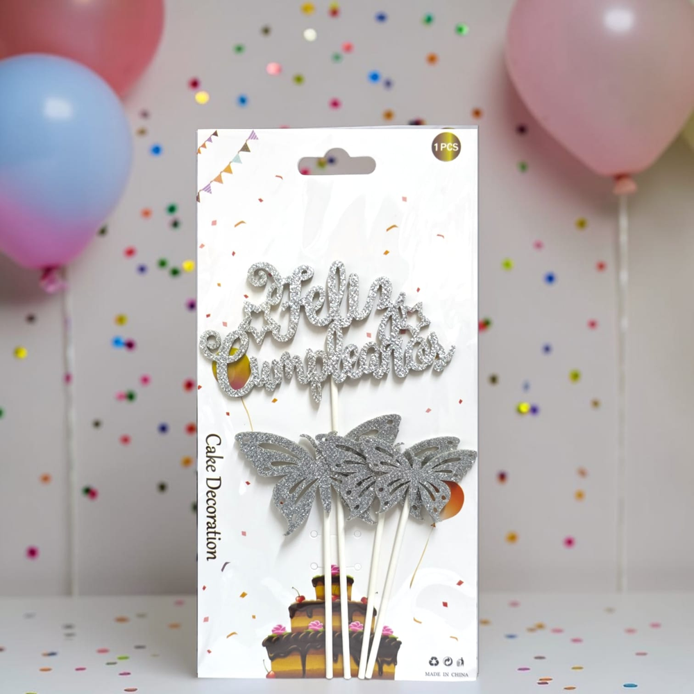 TOPPER FELIZ CUMPLEAÑOS + MARIPOSAS