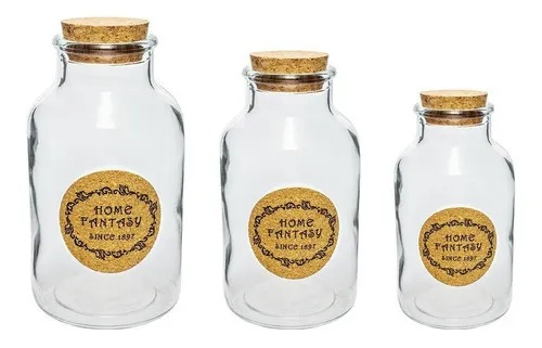 FRASCO DE VIDRIO MEDIANO TAPA CORCHO HOME FANTASY