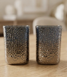 SET X 6 VASOS BAJOS SQUARE MOUTH GREY