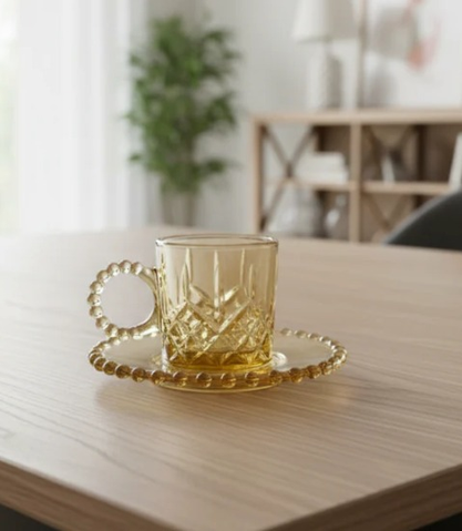 SET X 6 TAZAS + PLATOS STYLE GOLD DE VIDRIO