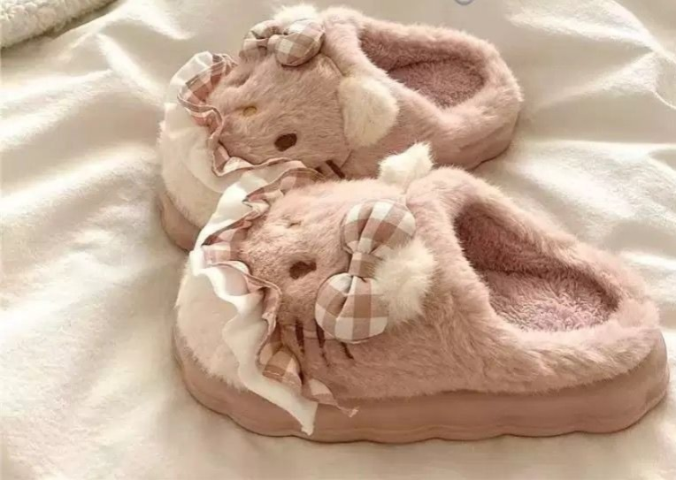 PANTUFLAS CON BASE GOMA ANTIDESLIZANTE KITTY ROSA