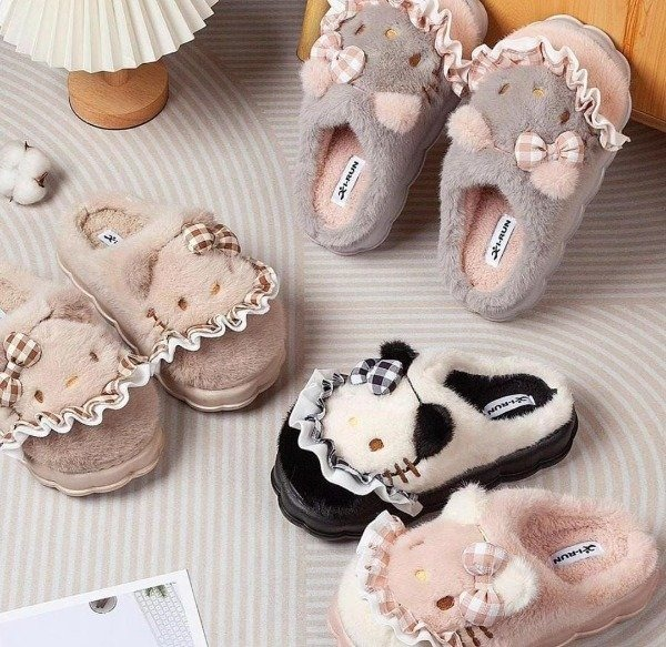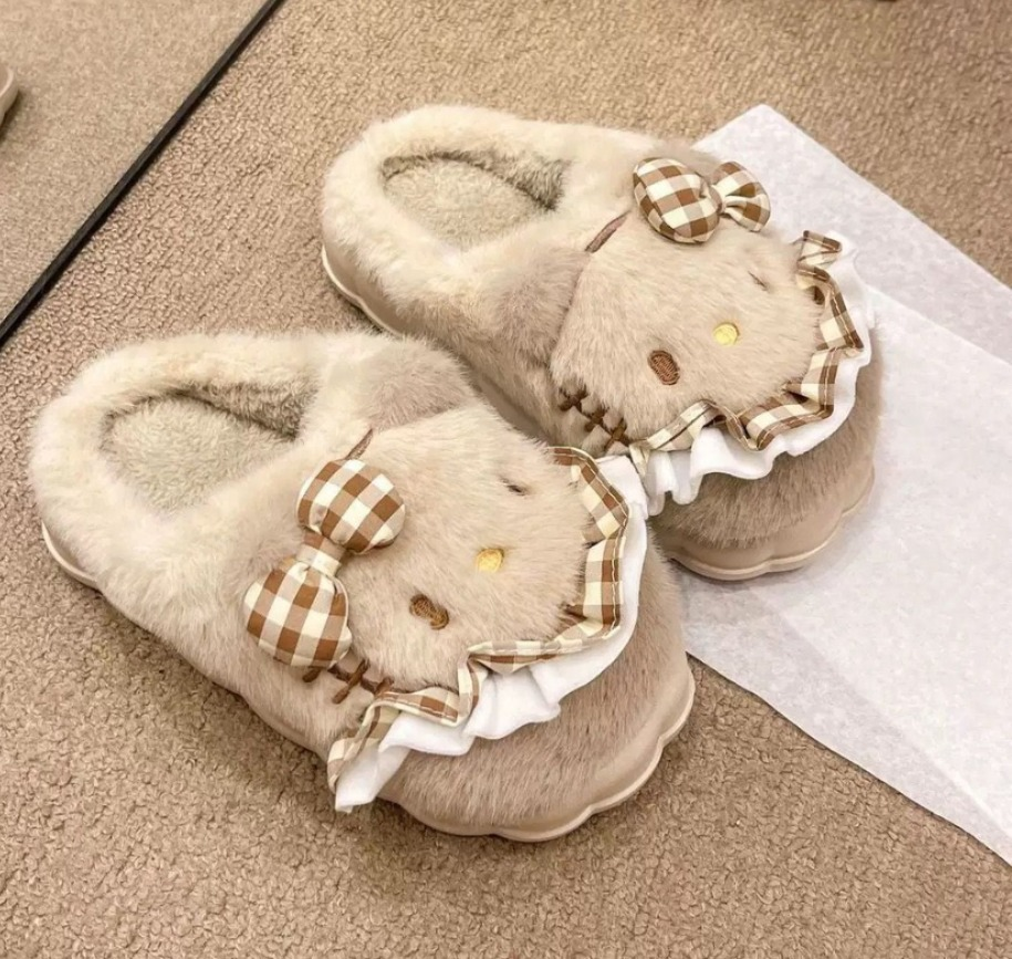 PANTUFLAS CON BASE GOMA ANTIDESLIZANTE KITTY BEIGE