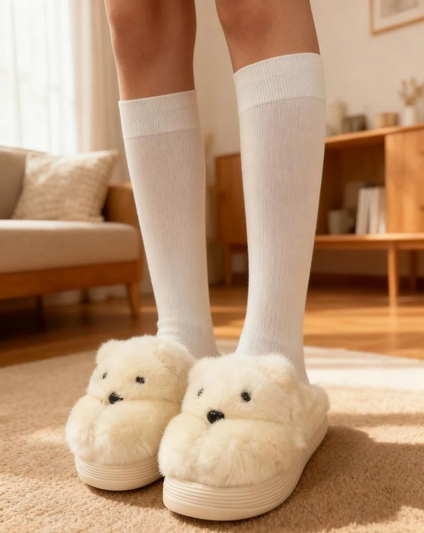 PANTUFLAS CON BASE GOMA ANTIDESLIZANTE CUTE MARRON