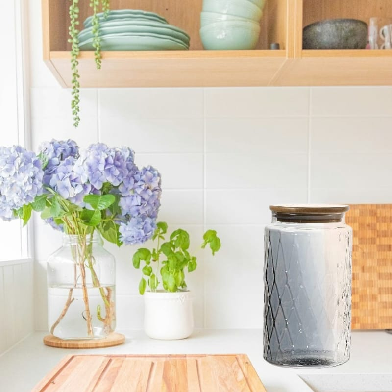 FRASCO VIDRIO GRIS TAPA BAMBU 800ML