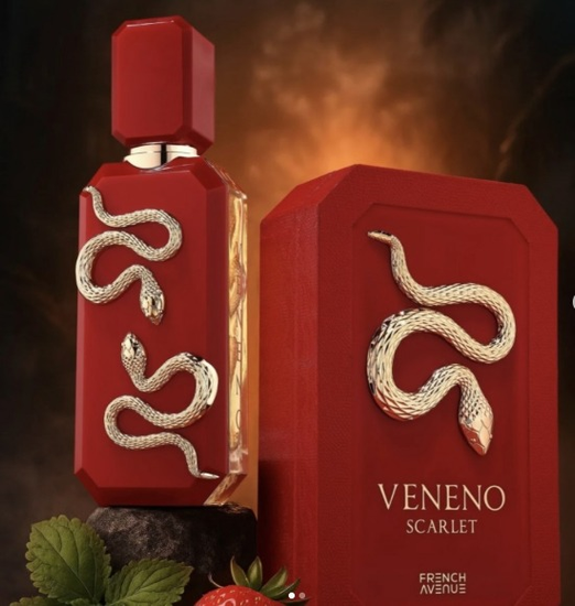 Veneno Scarlet de French Avenue es una fragancia oriental-gourmand unisex con una salida dulce y afrutada, un corazón especiado y amaderado, y una base rica y amaderada. Sus notas principales incluyen fresa, mora y caramelo en la salida; frambuesa, cedro y canela en el corazón; y cuero, vainilla, haba tonka, pachulí y abeto en la base. Se describe como un aroma audaz, sensual y moderno, ideal tanto para hombres como para mujeres que disfrutan de una fragancia intensa y duradera.