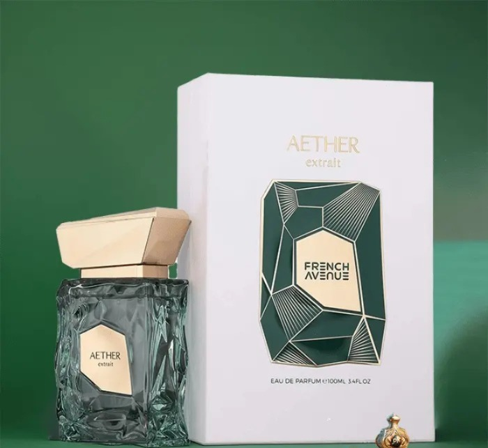 Aether de French Avenue (Fragance World) es una fragancia aromática frutal para hombres y Mujeres. Sus notas de salida son manzana verde, bergamota, mandarina; sus notas de corazón son cedro, petit grain, cachemira, violeta; y sus notas de fondo son almizcle, musgo de roble y madera de ámbar.