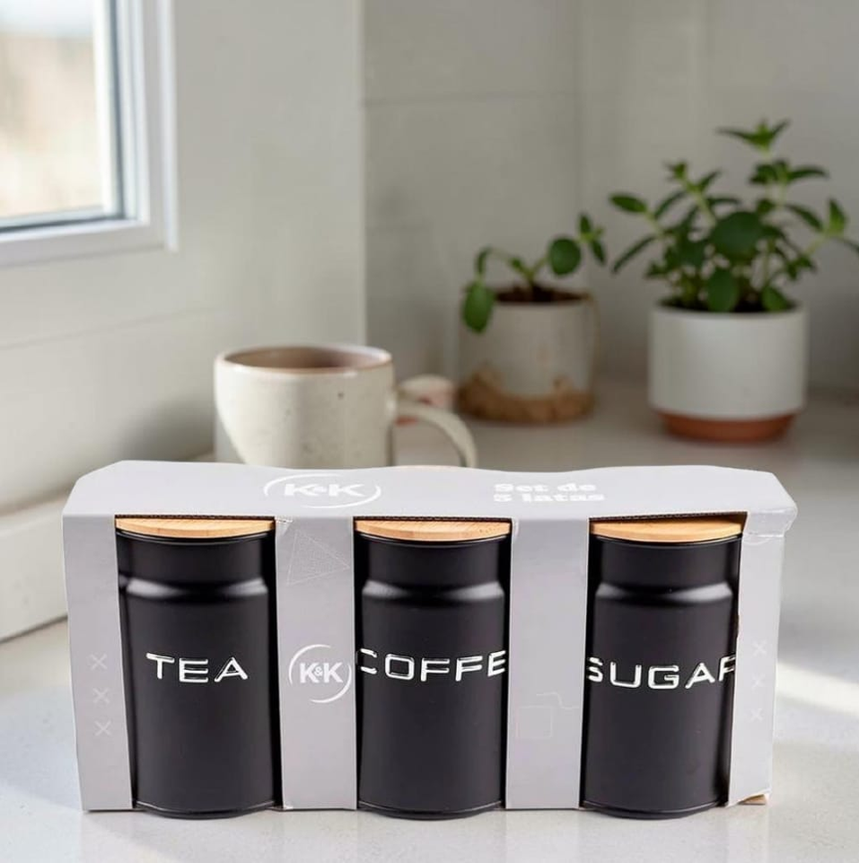 SET X 3 LATAS CON TAPA BAMBU (SUGAR-COFFEE-TEA)