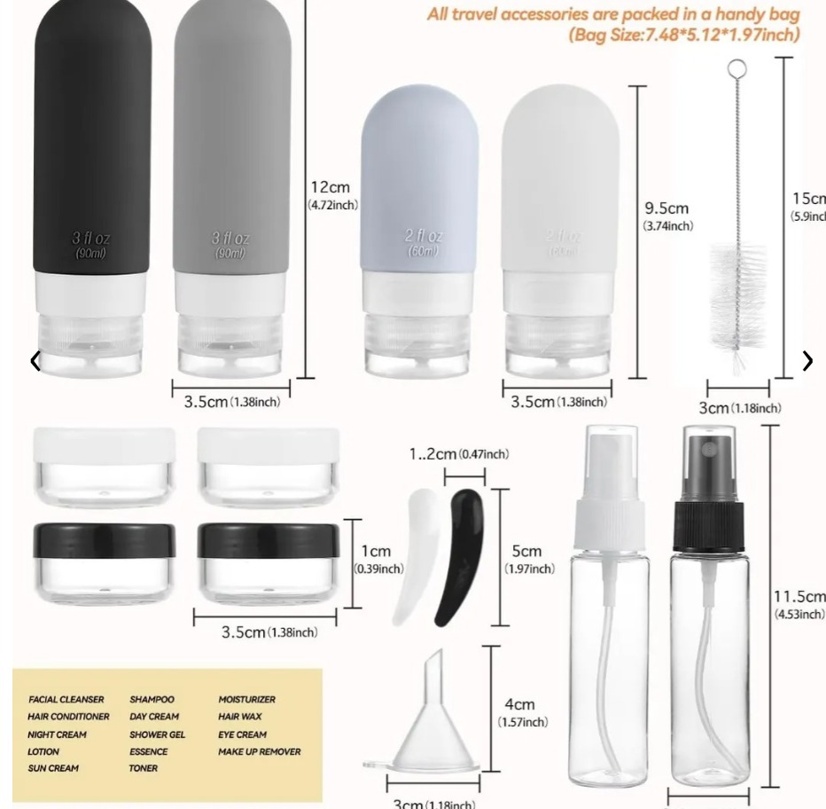 SET VIAJE (NECESER+ BOTELLAS+ACCESORIOS)