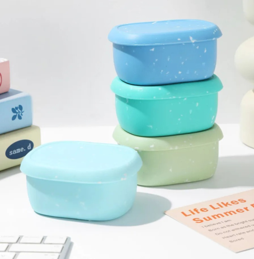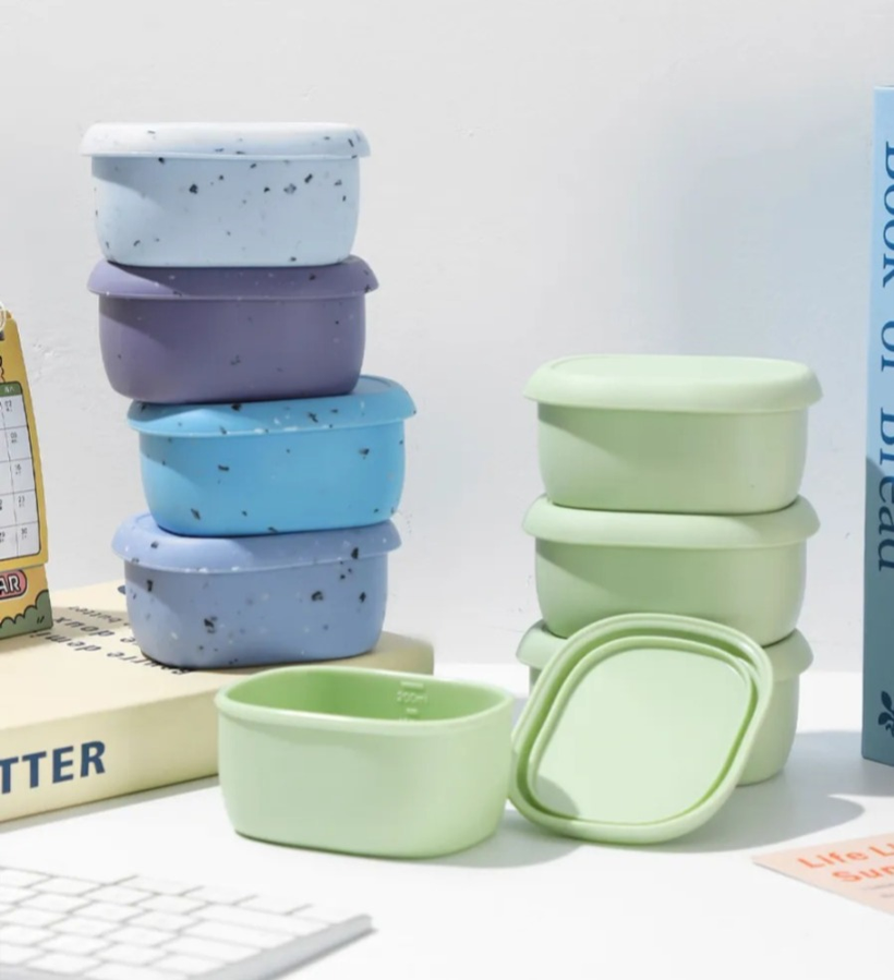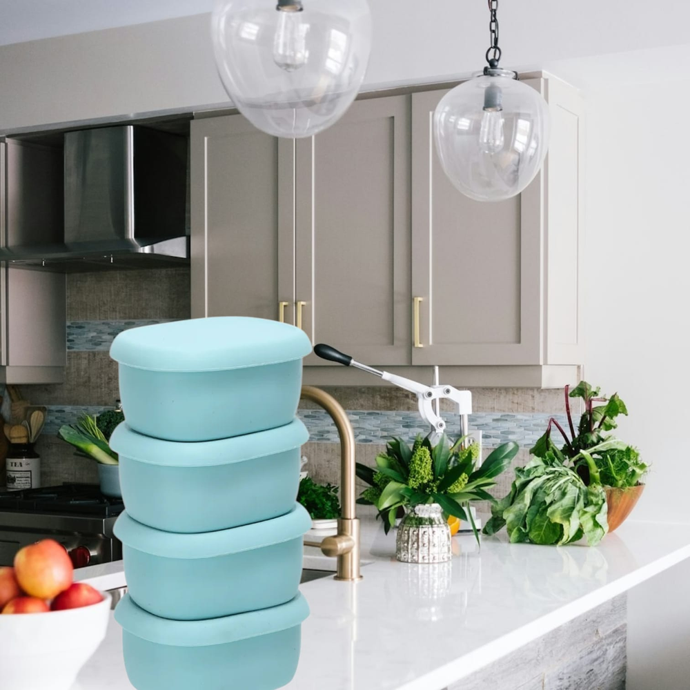 Set de 4 tuppers de silicona, prácticos y reutilizables.