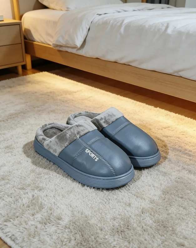 PANTUFLAS AZUL CON BASE GOMA ANTIDESLIZANTE HOMBRES CUERINA AFELPADAS