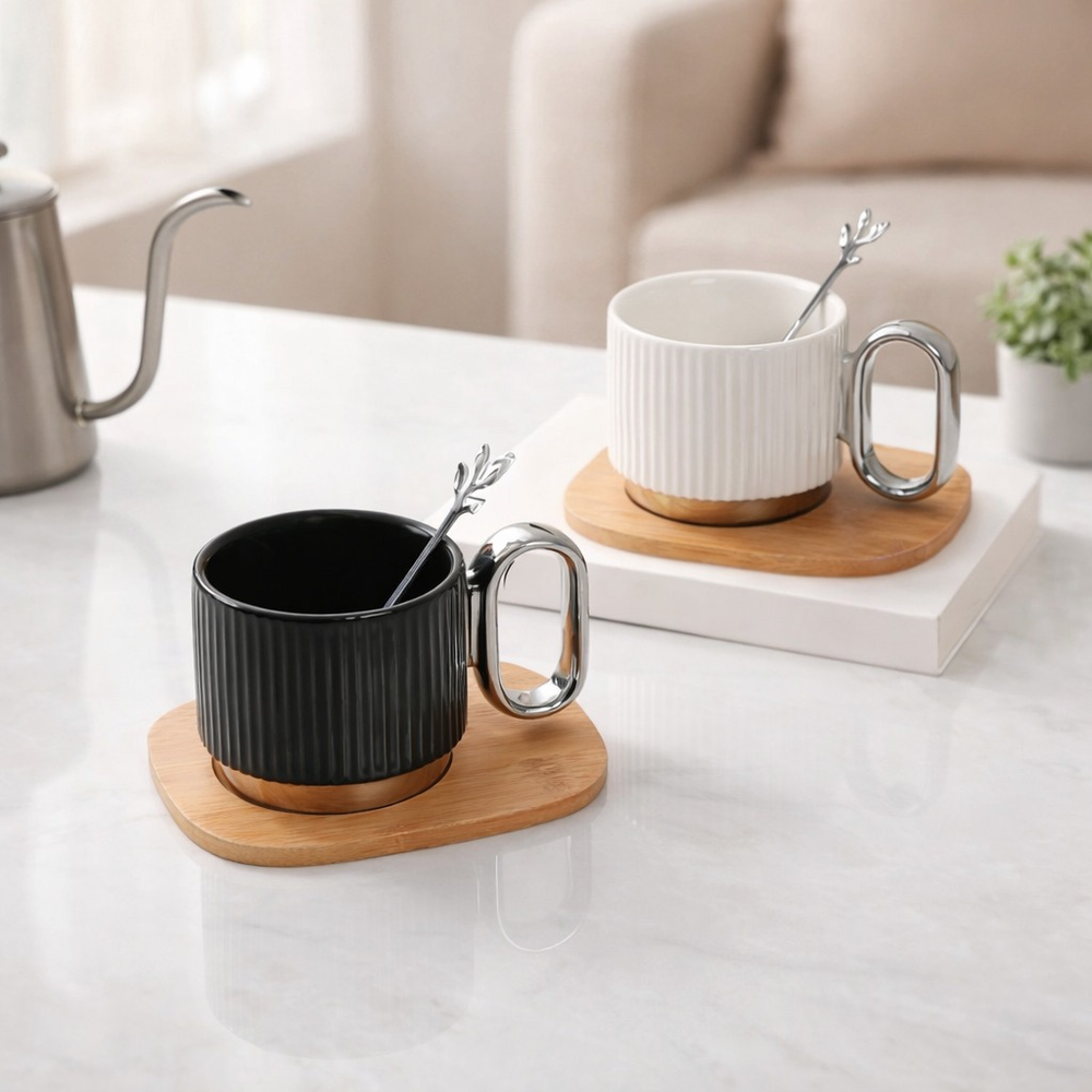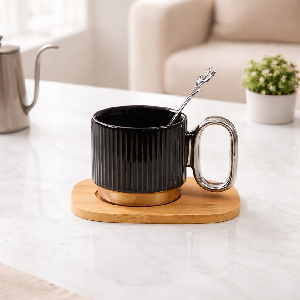 TAZA CERAMICA CON BASE DE MADERA Y CUCHARA