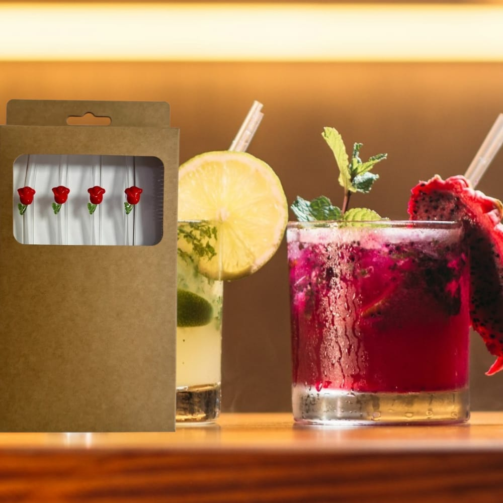 SORBETE DE VIDRIO CON ROSA X 4 +CEPILLO LIMPIA BOMBILLA