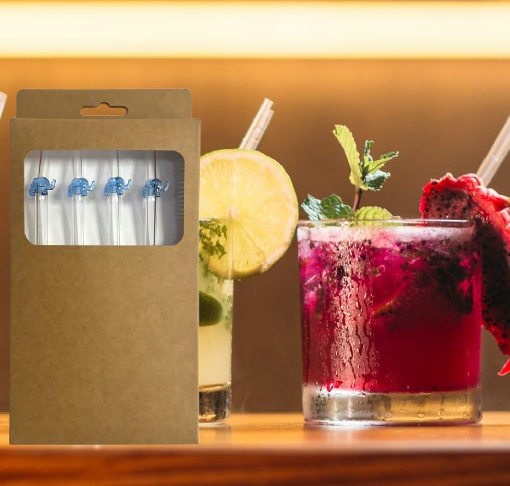 SORBETE DE VIDRIO CON ELEFANTE CELESTE X 4 +CEPILLO LIMPIA BOMBILLA