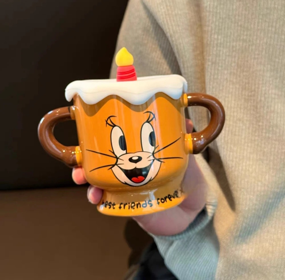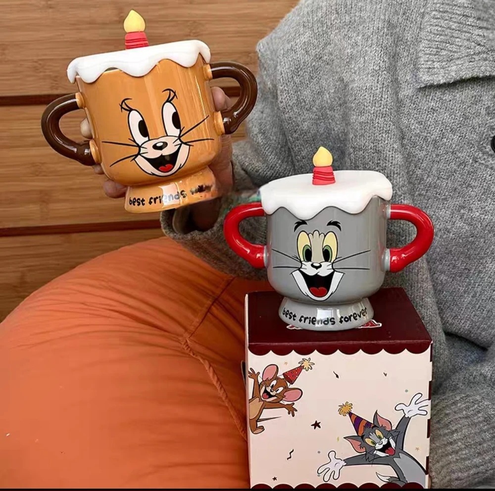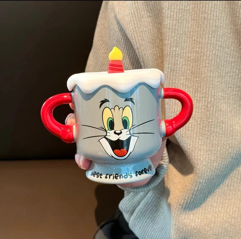 TAZA VELA CON 2 ASAS Y TAPA TOM Y JERRY CERAMICA