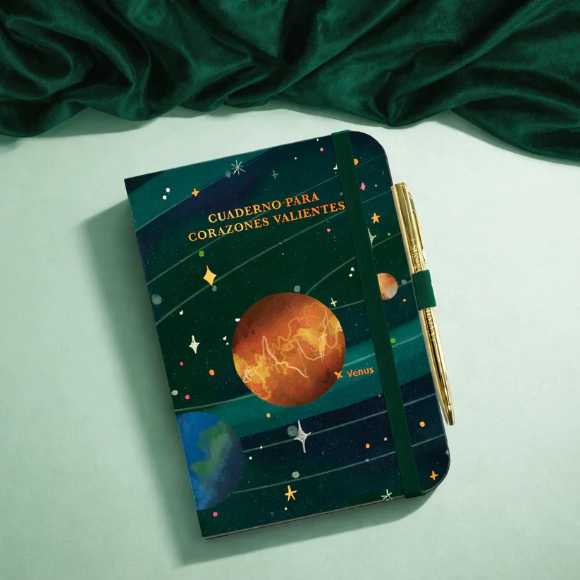- Incluye lapicera dorada y un soporte para que no se te pierda.