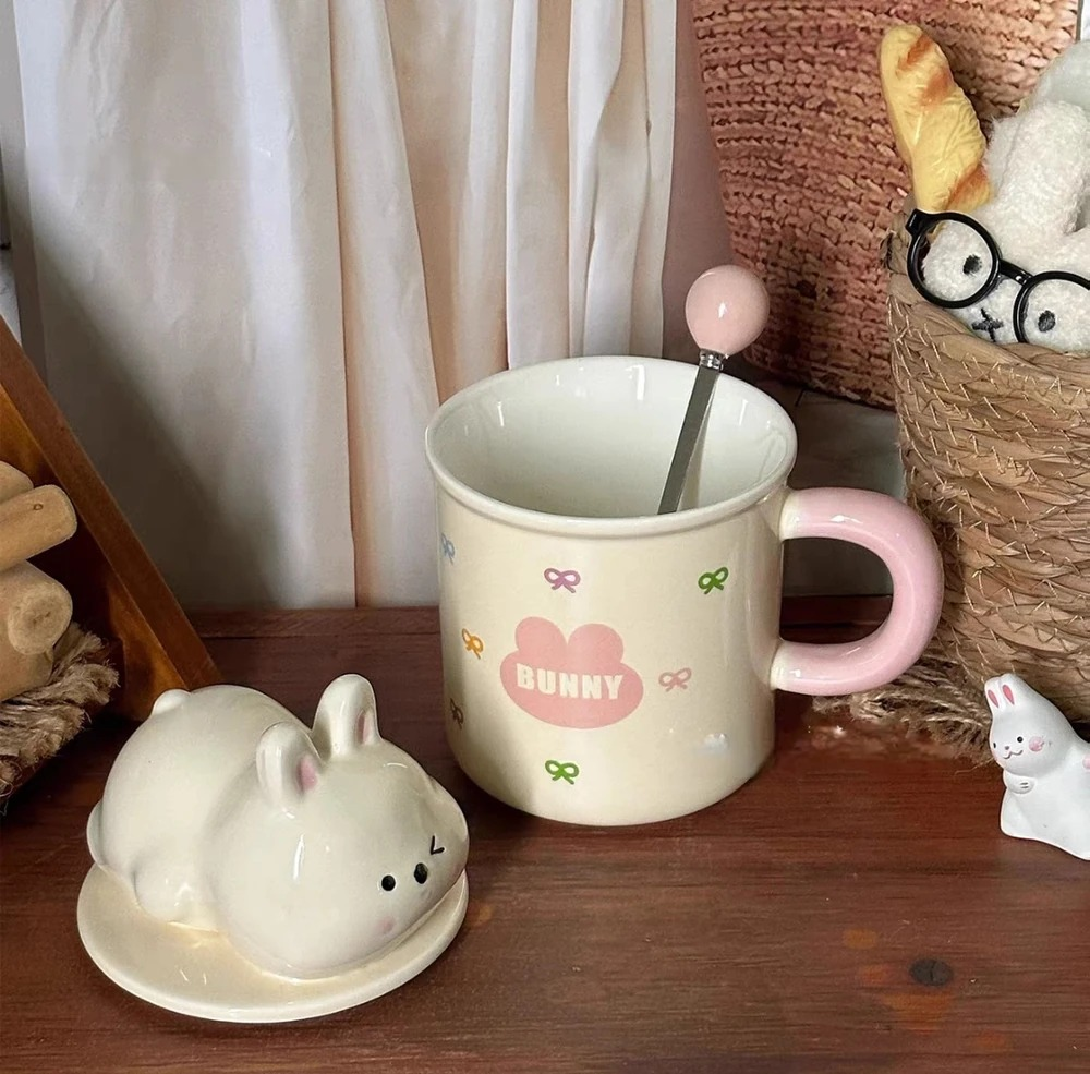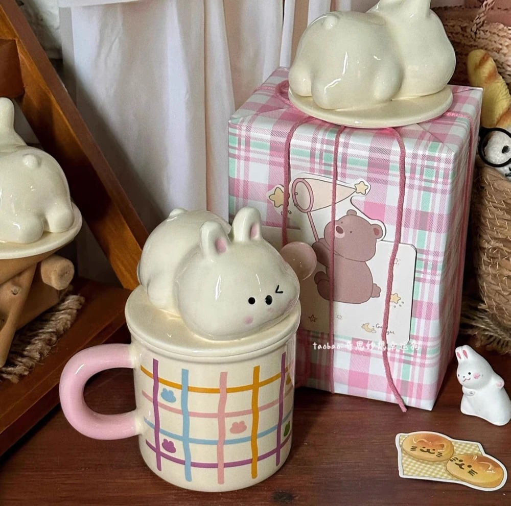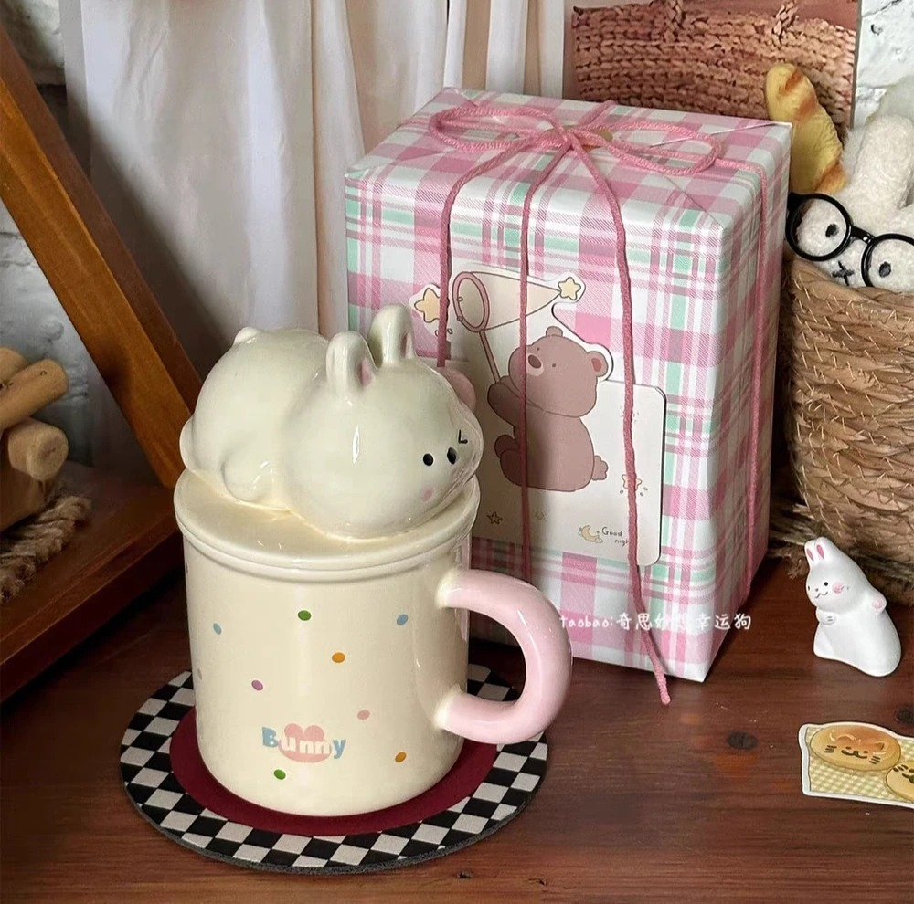 TAZA TAPA CONEJO RECOSTADO CERAMICA + PACKAGING
