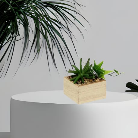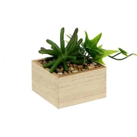 MACETA CON PLANTITA SIMIL MADERA