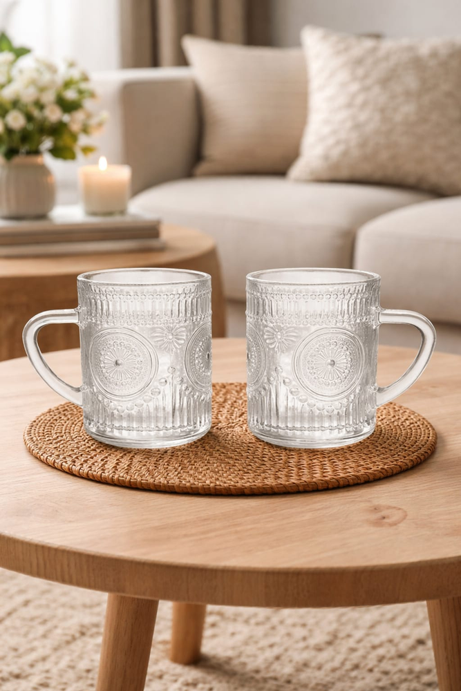 SET X 6 TAZA CAFE RETRO VIDRIO TRANSPARENTE