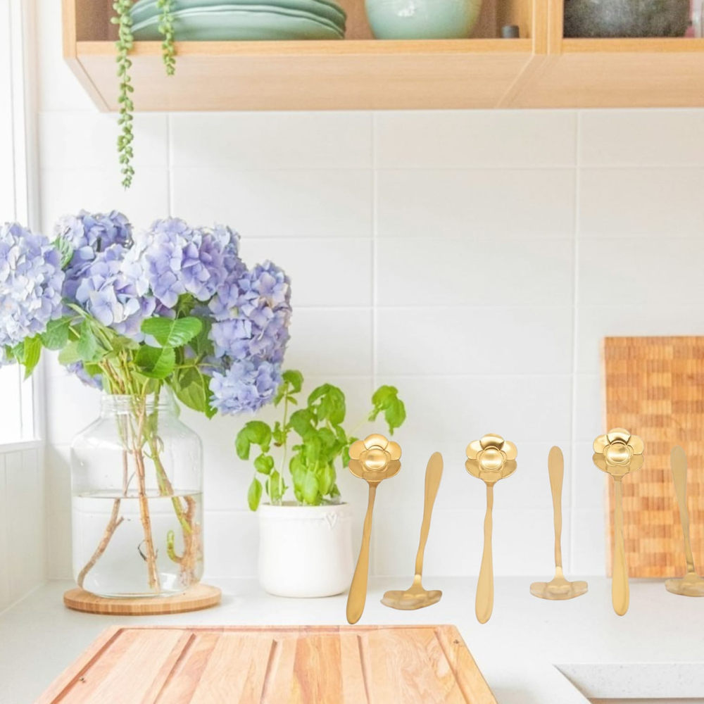 SET X 6 CUCHARITAS FLOR DORADA