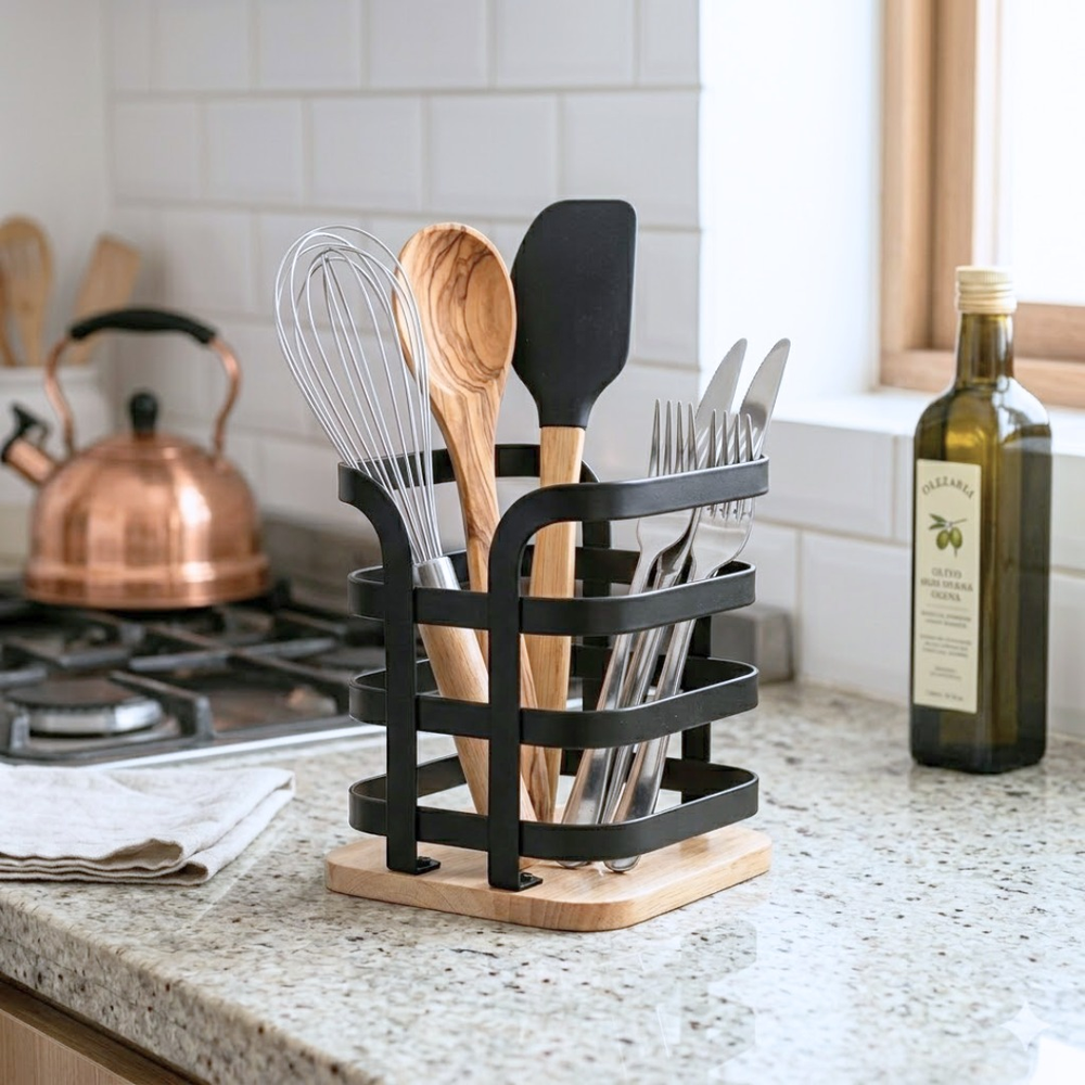 PORTA CUBIERTOS BAMBU Y HIERRO
