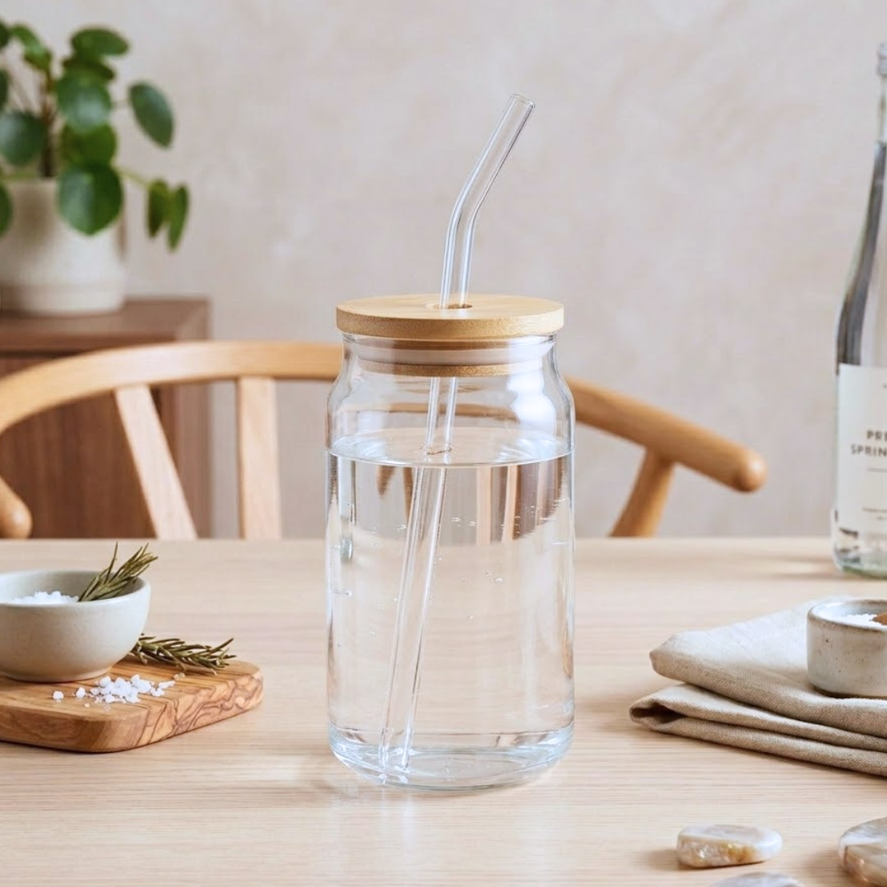 VASO DE VIDRIO CON TAPA Y SORBETE