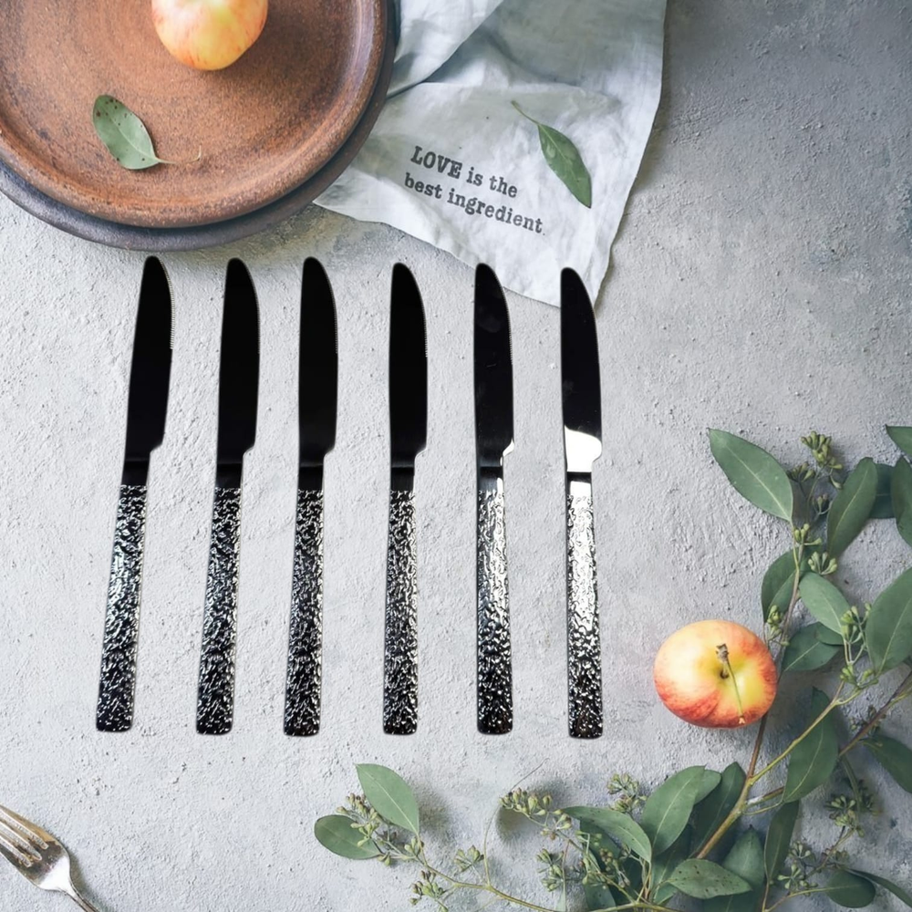 PACK X 6 CUCHILLO ACERO MANGO ESTILO PIEDRA