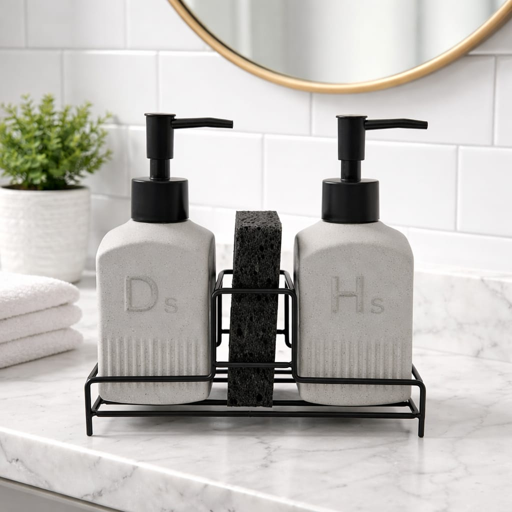 SET DE DISPENSER CERAMICA CON ESPONJA + SOPORTE