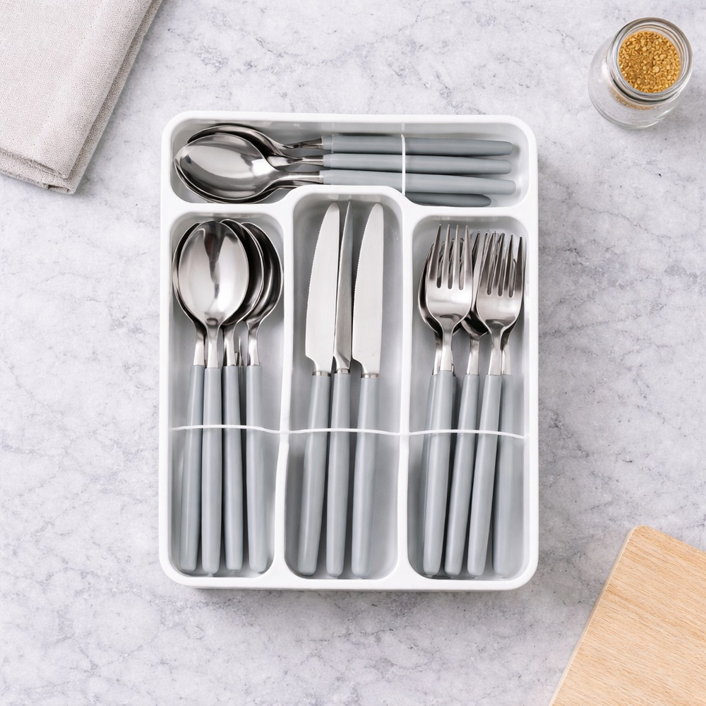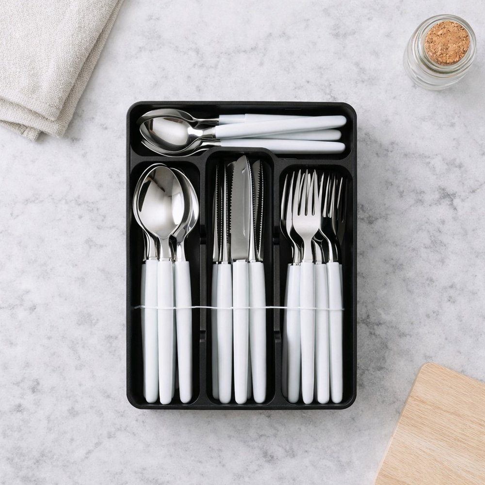 Contiene: 6 cucharas / 6 cucharitas / 6 tenedor / 6 cuchillo