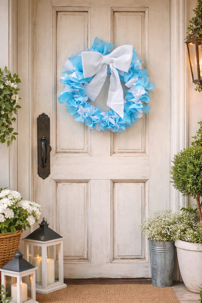 CORONA BIENVENIDA CELESTE Y BLANCA