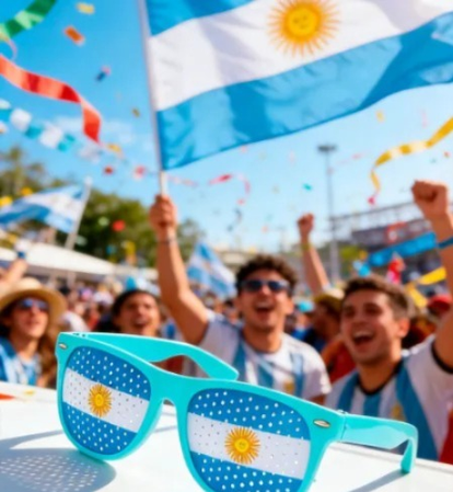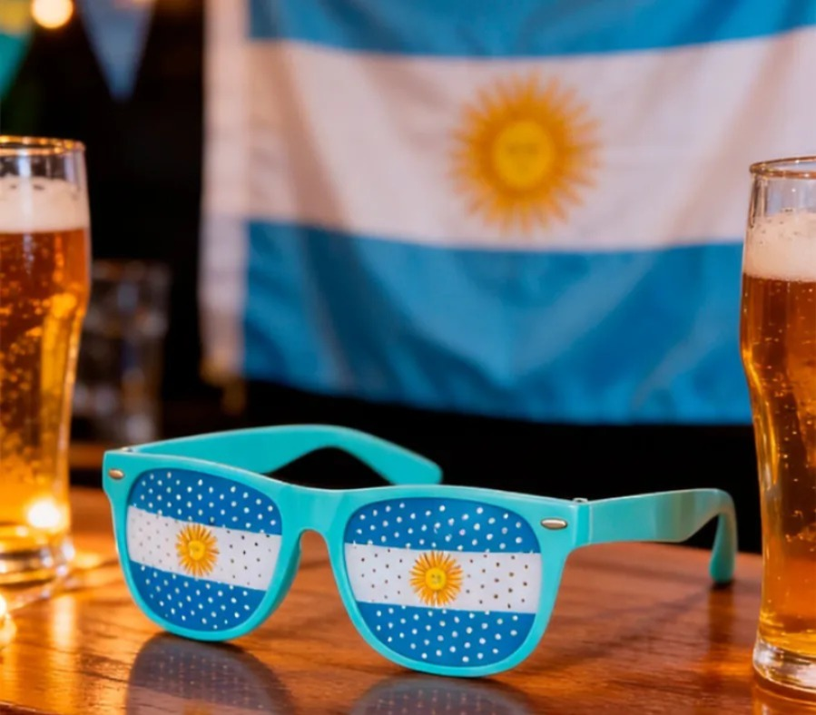 Anteojos de hincha argentino con diseño divertido de la bandera. Livianos y cómodos para usar durante varias horas. Con agujeritos que permiten mantener la visión mientras le dan un estilo original. Ideales para partidos, previas, eventos o fotos.
