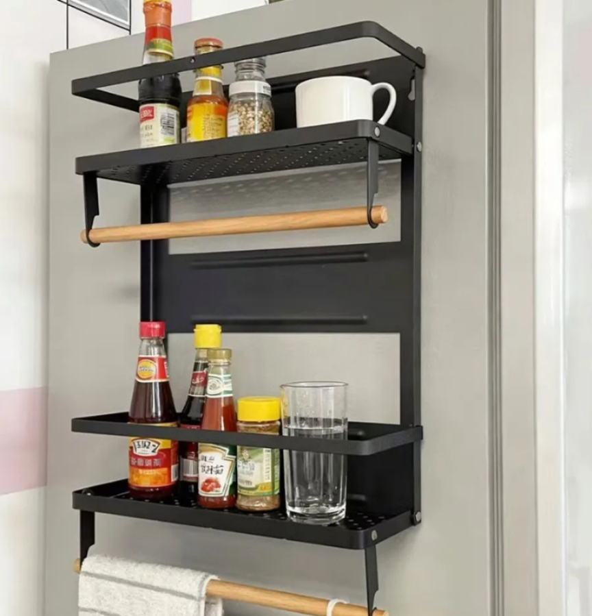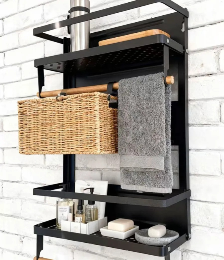 Estante práctico y funcional, ideal para organizar utensilios y optimizar el espacio en la cocina. Cuenta con varios niveles y ganchos que permiten mantener todo ordenado y al alcance, facilitando el uso diario. Su diseño resistente lo hace cómodo de usar y de adaptar a distintos espacios.