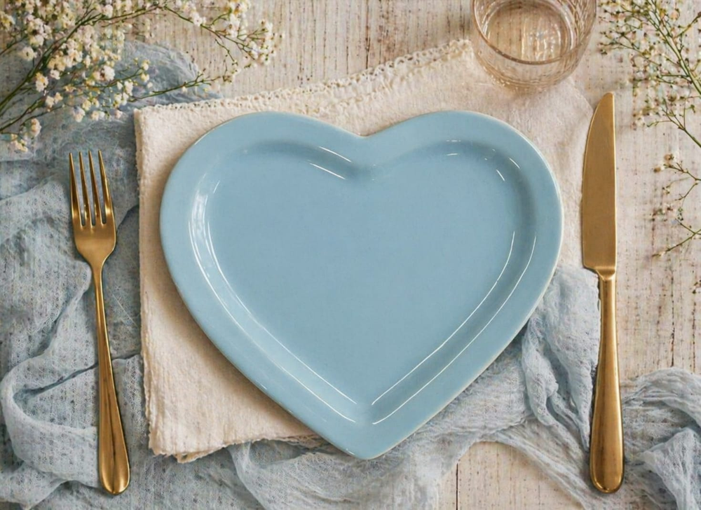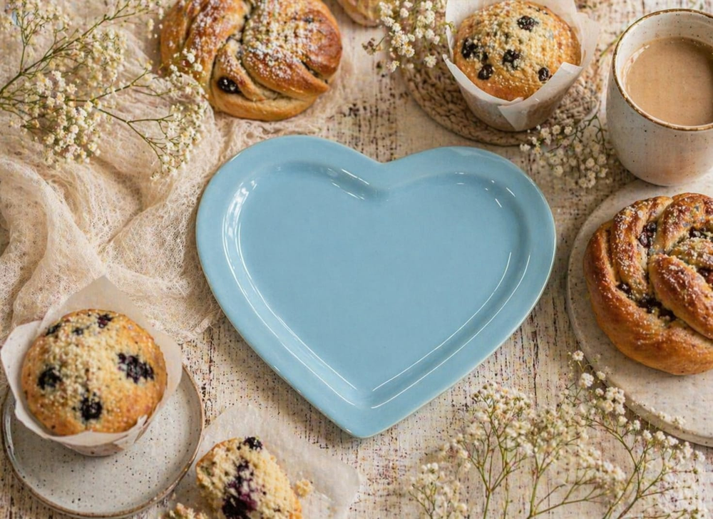 BANDEJA PLATO GRANDE CERAMICA CORAZON CELESTE