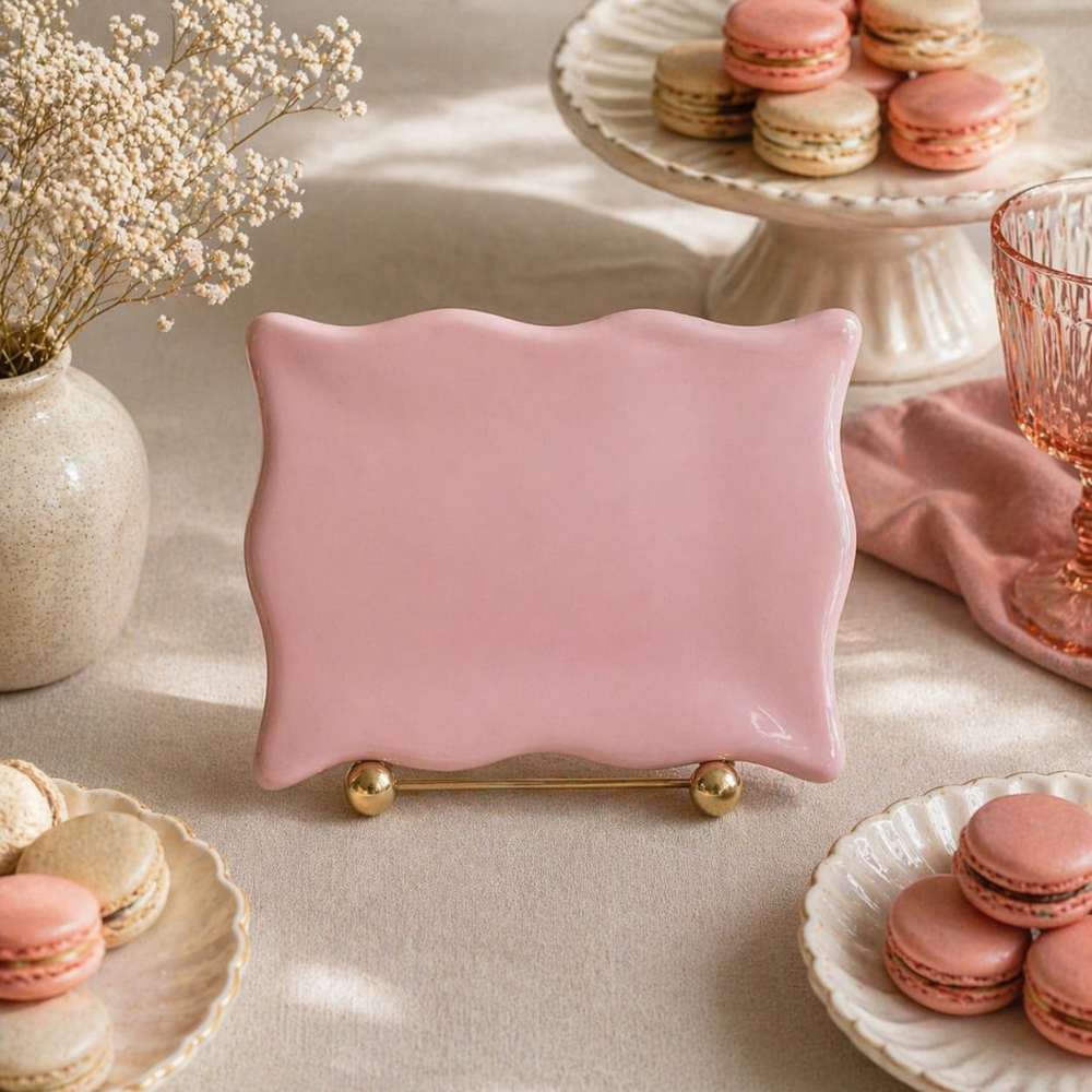 BANDEJA PLATO CERAMICA RECTANGULAR ONDAS ROSA